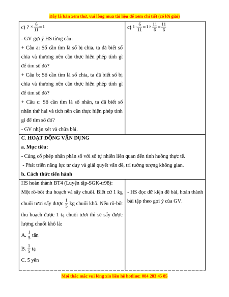 - Năng lực giao tiếp toán học: Thông qua các bài toán thực tế liên quan đến phép nhân và phép chia phân số.