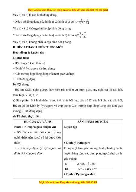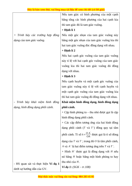 của Định lý Pythagore và ứng dụng; Các trường hợp đồng dạng của tam giác vuông; Hình đồng dạng.