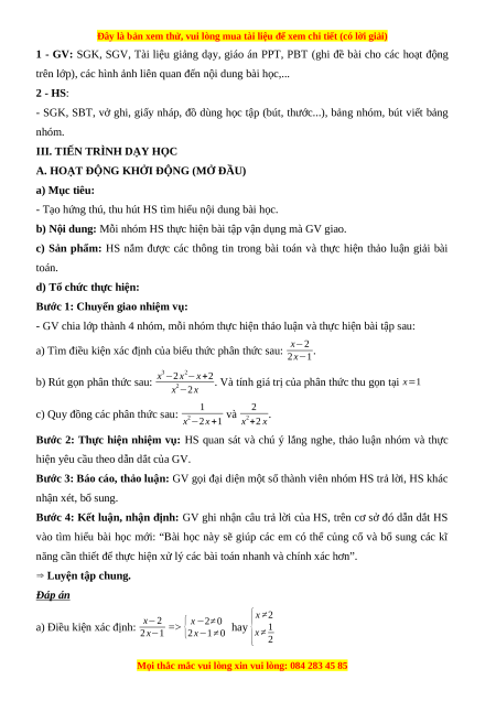 + Rút gọn và quy đồng phân thức. b) Nội dung: