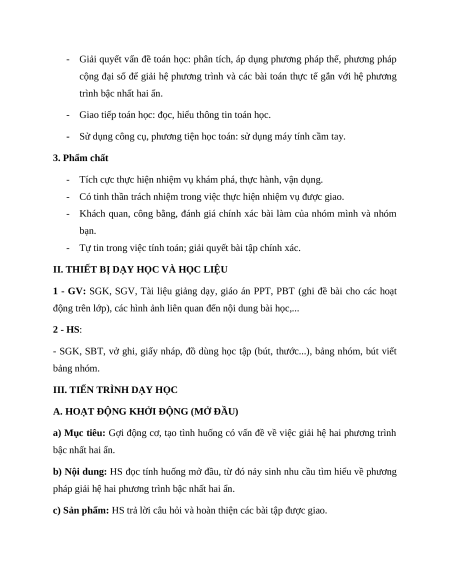 II. THIẾT BỊ DẠY HỌC VÀ HỌC LIỆU