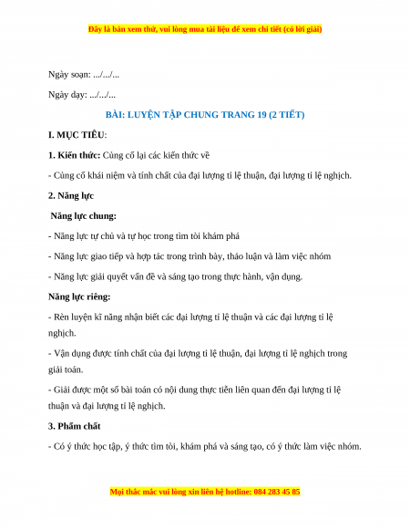 BÀI: LUYỆN TẬP CHUNG TRANG 19 (2 TIẾT) I. MỤC TIÊU: