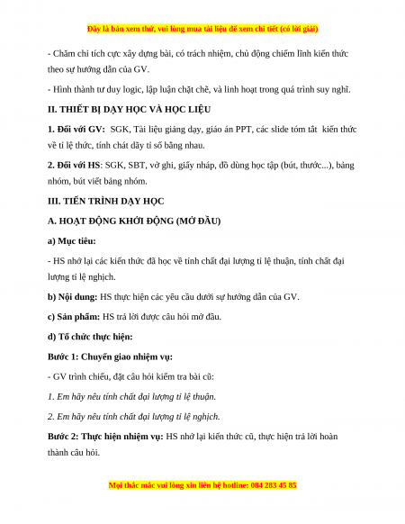 - Củng cố khái niệm và tính chất của đại lượng tỉ lệ thuận, đại lượng tỉ lệ nghịch. 2. Năng lực