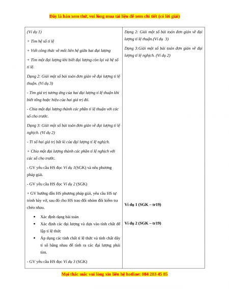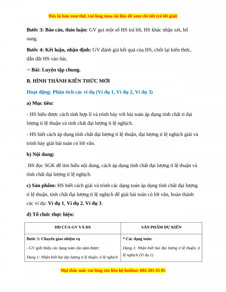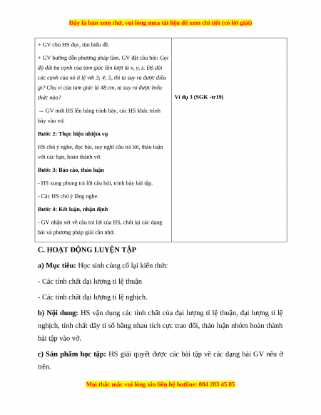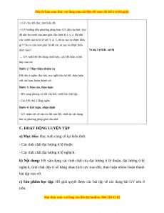 c) Sản phẩm: HS biết cách giải và trình các dạng toán áp dụng tính chất đại lượng