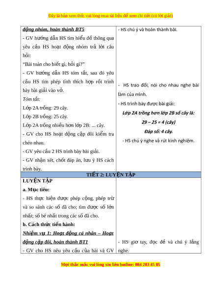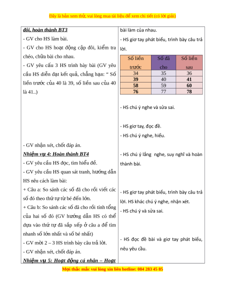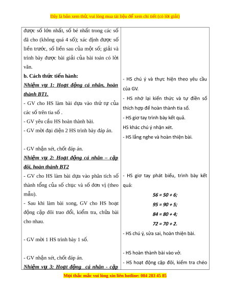 ọ thắc mắc vui lòng xin liên hotline: 084 283 45 85 Đây là bản xem th , vui ử lòng mua tài li u ệ đ xe ể m chi ti t ế (có l i ờ gi i ả ) đư c ợ số l n ớ nh t ấ , số bé nh t ấ trong các số đã cho (không quá 4 s ) ố ; xác đ nh ị đư c ợ số li n ề trư c, ớ số li n ề sau c a ủ m t ộ s ; ố gi i ả và trình bày đư c ợ bài gi i ả c a ủ bài toán có l i ờ văn. b. Cách th c t ứ i n hành: ế