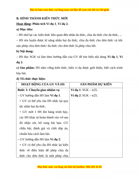 nào phép chia đơn thức/ đa thức cho đơn thức là phép chia hết. b) Nội dung: