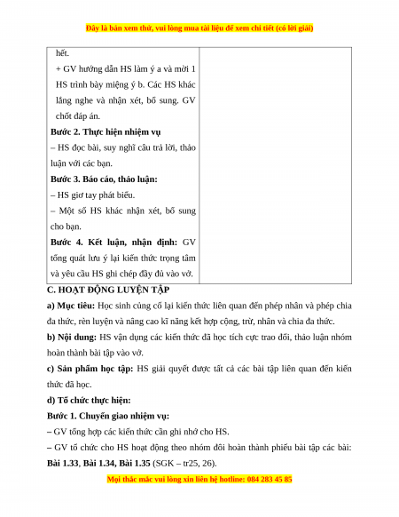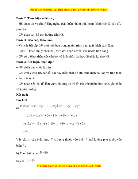 + GV có thể yêu cầu HS nhắc lại quy tắc nhân hai đa thức.