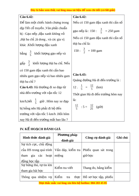 Đây là bản xem th , vu ử i lòng mua tài li u ệ đ xe ể m chi ti t ế (có l i ờ gi i ả ) Câu 6.42: Câu 6.42: Đ l ể àm m t ộ chi c ế bánh ch ng t ư rong N u ế có 150 gam đ u xanh t ậ hì c n s ầ ố dịp T t ế cổ truy n ,V ề ân ph i ả chu n ẩ 3 g o ạ n p l ế à : 150 : = 250 gam bị : G o n ạ p ,đ ế u ậ xanh không v ỏ 5 ,thịt ba ch ,l