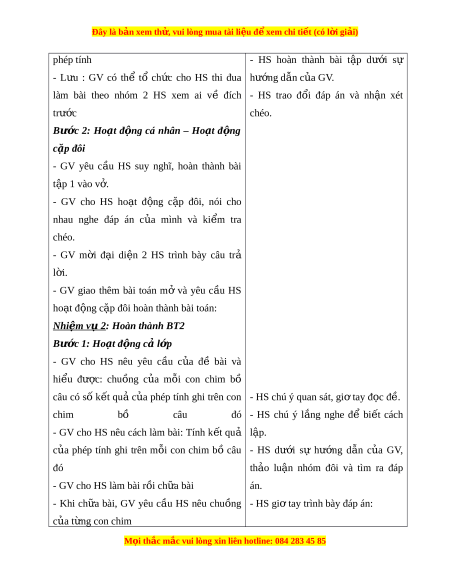 Đây là bản xem th , vu ử i lòng mua tài li u ệ đ xe ể m chi ti t (c ế ó l i ờ gi i ả ) b ng ả nhóm. - GV g i ọ đ i ạ hi n ệ 1 HS đ ng ứ d y ậ trình bày k t ế quả trư c ớ l p. ớ - GV nh n xét ậ , đ a r ư a đáp án đúng Nhi m ệ vụ 2: Ho t ạ đ ng ộ cả l p, ớ hoàn thành BT2