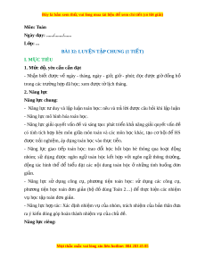 Ngày dạy: ....../......./...... L p: ớ ... BÀI 32: LUY N Ệ TẬP CHUNG (1 TI T Ế ) I. M C Ụ TIÊU 1. Mức đ , ộ yêu c u c ầ n đ ầ t ạ - Nh n ậ bi t ế đư c