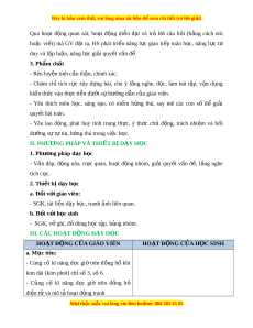Đây là bản xem th , vu ử i lòng mua tài li u ệ đ xe ể m chi ti t (c ế ó l i ờ gi i ả ) Qua ho t ạ đ ng ộ quan sát, ho t ạ đ ng ộ di n ễ đ t ạ và trả l i ờ câu h i ỏ (b ng ằ cách nói ho c ặ vi t ế ) mà GV đ t ặ ra, HS phát tri n ể năng l c ự giao ti p ế toán h c, ọ năng l c ự tư duy và l p ậ lu n, năng l ậ c ự gi i ả quy t ế v n đ ấ . ể 3. Phẩm ch t ấ - Rèn luy n t ệ ính c n t ầ h n, chí ậ nh xác. - Chăm chỉ tích c c ự xây d ng ự bài, chú ý l ng ắ nghe, đ c, ọ làm bài t p, ậ v n ậ d ng ụ ki n t ế h c ứ vào th c t ự i n d ễ ư i ớ s h ự ư ng d ớ n c ẫ a ủ giáo viên. - Yêu thích môn h c, ọ sáng t o, ạ có ni m ề h ng