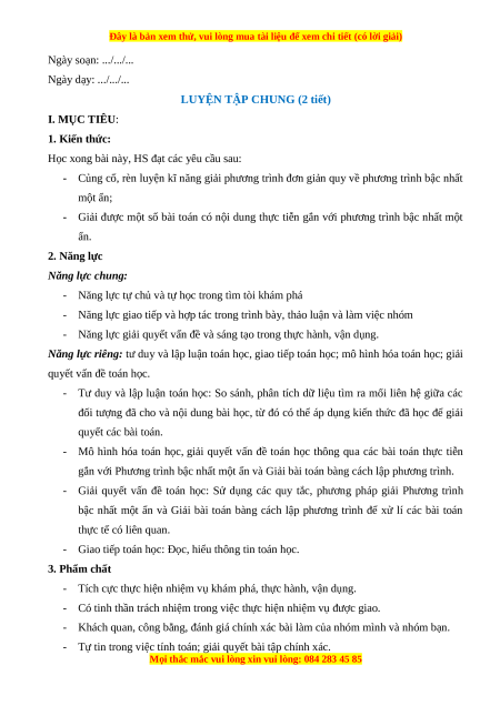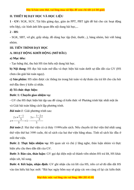 gắn với Phương trình bậc nhất một ẩn và Giải bài toán bàng cách lập phương trình.