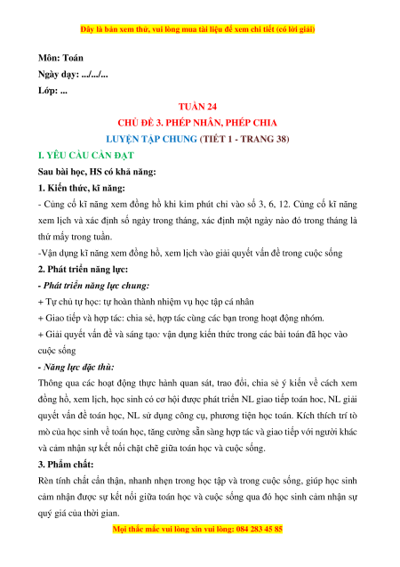 Ngày dạy: .../.../... Lớp: ... TUẦN 24