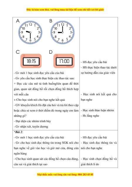 đồng hồ, xem lịch, học sinh có cơ hội được phát triển NL giao tiếp toán hoc, NL giải