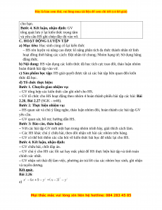 hoạt đồng thời bằng các cách: Đặt nhân tử chung; Nhóm hạng tử; Sử dụng hằng đẳng thức. b) Nội dung: