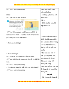 ọ sinh: SGK, phi u bài ế t p, ậ bút, … III. CÁC HO T Ạ Đ N Ộ G D Y Ạ H C Ọ CH Ủ Y U Ế Hoạt đ ng c ộ a G ủ V Hoạt đ ng c ộ a H ủ S A. KH I Ở Đ N Ộ G (5 phút) a. Mục tiêu: - T o h ạ ng ứ kh i ở cho HS bư c vào ớ bài h c m ọ i ớ - Bi t ế cách gi i ả và trình bày bài gi i ả bài toán v nhi ề u h ề n. ơ - Liên h ki ệ n t ế h c ứ đã h c vào gi ọ i ả quy t ế m t ộ s t ố ình hu ng g ố n v ắ i ớ th c t ự ế cu c ộ sống h ng
