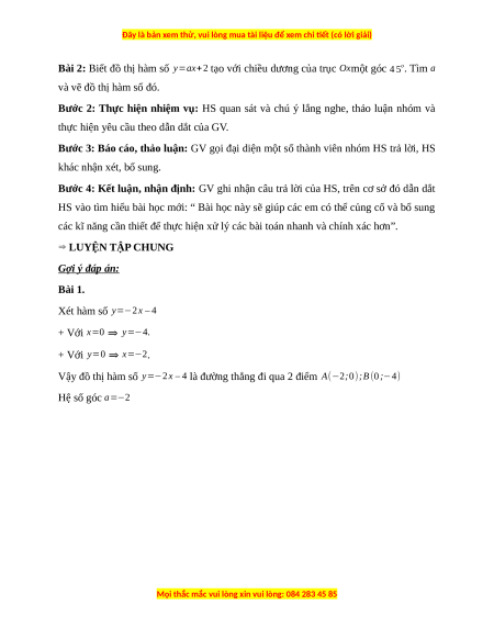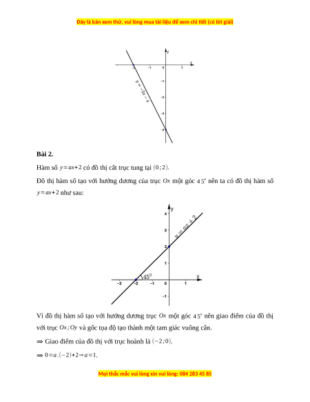 Bài 2: Biết đồ thị hàm số y=ax+2 tạo với chiều dương của trục Oxmột góc 4 5o. Tìm a