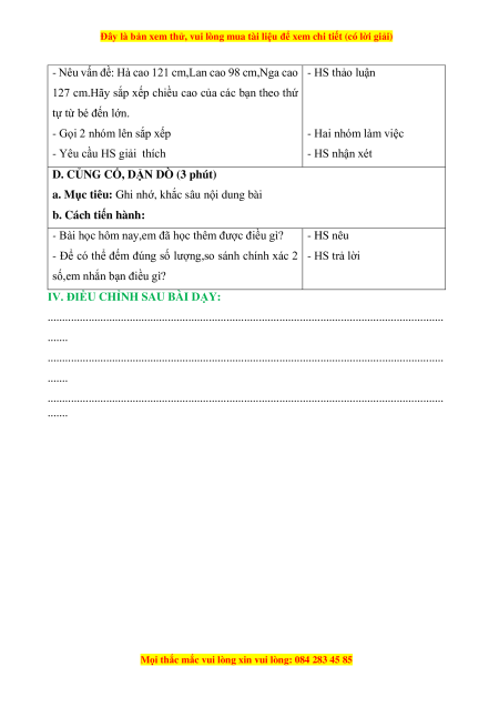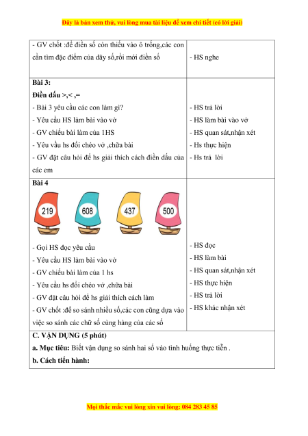 - Thực hành vận dụng đọc,viết,so sánh các số đã học trong tình huống thực tiễn b. Cách tiến hành: