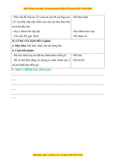 - Rèn kĩ năng tính toán, kĩ năng trình bày, khả năng tư duy và lập luận. b. Cách tiến hành