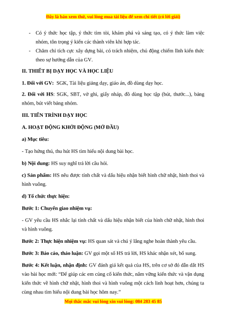 II. THIẾT BỊ DẠY HỌC VÀ HỌC LIỆU