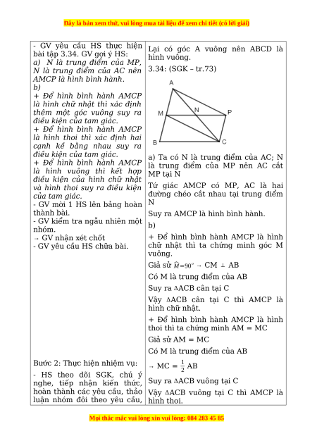 bài tập 3.34. GV gợi ý HS: hình vuông.