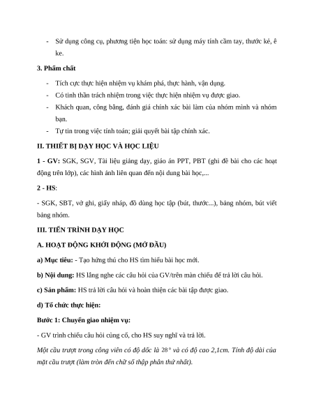 - Sử dụng công cụ, phương tiện học toán: sử dụng máy tính cầm tay, thước kẻ, ê ke. 3. Phẩm chất