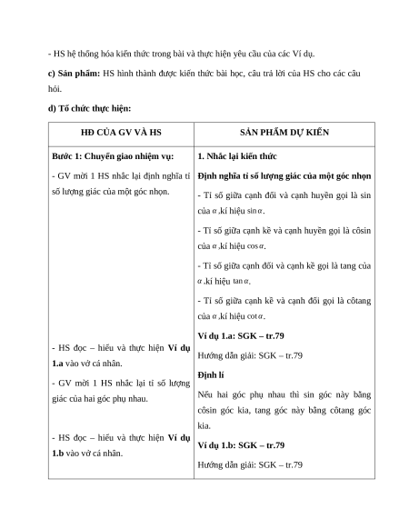 - Vận dụng định nghĩa tỉ số lượng giác của một góc nhọn và bảng tỉ số lượng giác của