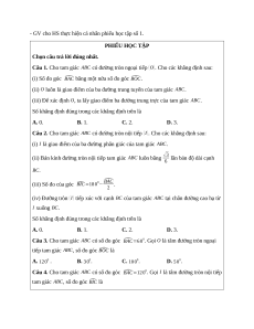 Câu 1. Cho tam giác ABC có đường tròn ngoại tiếp (O). Cho các khẳng định sau: (i) Số đo góc ^