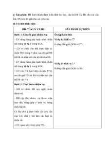 c) Sản phẩm: HS trả lời câu hỏi và hoàn thiện các bài tập được giao.