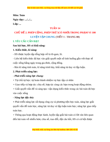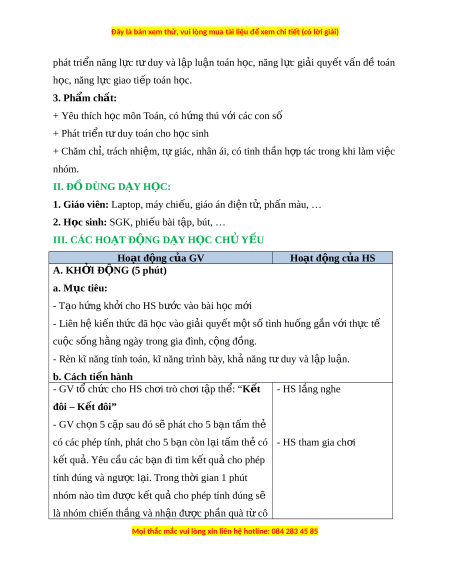 ứ rong các bài toán đã h c ọ vào cuộc sống - Năng l c ự đ c ặ thù: + Phát tri n ể năng l c ự sử d ng công c ụ ụ và phư ng t ơ iện h c t ọ oán, năng l c ự gi i ả quy t ế v n đ ấ t ề oán h c, ọ năng l c ự t duy và ư l p l ậ u n t ậ oán h c; ọ năng l c ự giao ti p ế toán h c. ọ + Thông qua ho t ạ đ ng t ộ h c hành, ự luy n t ệ p ậ gi i ả bài toán có l i ờ văn liên quan đ n bài ế toán v nhi ề u h ề n; ơ chia s , ẻ trao đ i ổ , đ t ặ câu h i ỏ , HS có c h ơ i ộ đư c ợ