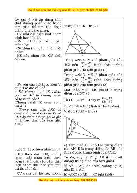 - Vận dụng được các tính chất đường trung bình, tính chất đường phân giác của tam giác. b) Nội dung: