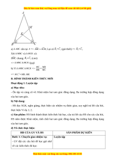 HS nắm được Khái niệm, tính chất hai tam giác đồng dạng; Ba trường hợp đồng dạng của hai tam giác.