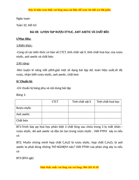 Đây là bản xem th , vu ử i lòng mua tài li u ệ đ xe ể m chi ti t (c ế ó l i ờ gi i ả ) Ngày soạn: Tuần 32, tiết 63