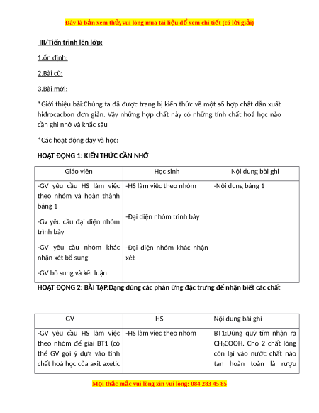 *Giới thiệu bài:Chúng ta đã được trang bị kiến thức về một số hợp chất dẫn xuất