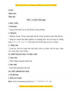 Giáo án Luyện tập( Tiếp theo) Toán 9 Học kì 2