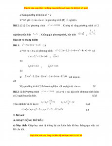 Bài 2: (2 đ) Phương trình x2−x−12=0 có a và c trái dấu nên phương trình luôn có 2 nghiệm phân biệt. 0,5đ c x −b =1 x . x =−12