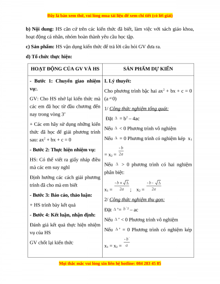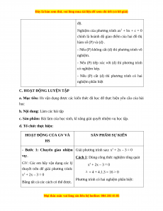 thức đã học để giải phương trình sau: ax2 + bx + c = 0