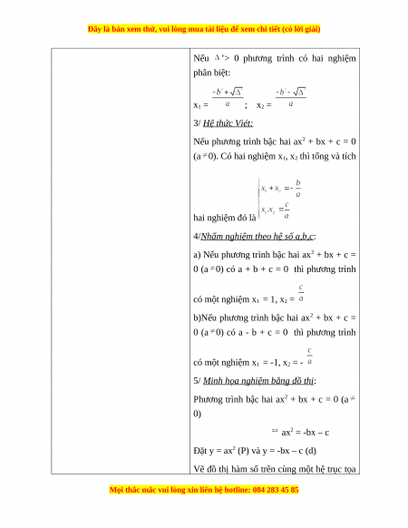Nếu ’> 0 phương trình có hai nghiệm phân biệt: x1 = ; x2 = 3/ Hệ thức Viét: