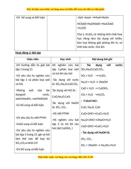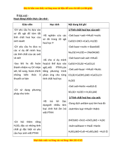 những kiến thức lí phản ứng cho từng CO2(k)+Ca(OH)2(dd)→CaCO3(r)+ thuyết cơ bản tính chất hoá học H2O(l) -Oxit axit+Nước→axit(d d) -GV sử dụng phương SO pháp như trên 2(k)+ H2O(l)→ H2SO3(dd)