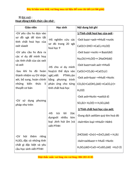 Đây là bản xem th , vu ử i lòng mua tài li u ệ đ xe ể m chi ti t (c ế ó l i ờ gi i ả ) -GV bổ sung và kết luận -Axit +bazơ →Muói+Nước HCl(dd)+NaOH(dd)→NaCl(dd) +H2O(l)