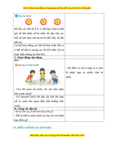 ấ kì (trong các số từ 0 đ n ế 10) và th c ự hi n t ệ ư ng ơ t nh ự t ư rên. C. Hoạt đ ng v ộ n d ậ ng ụ Bài 4 - HS đ m ế và chỉ ra b n ạ có ít viên bi nh t ấ , b n ạ có nhi u ề viên bi nh t ấ .