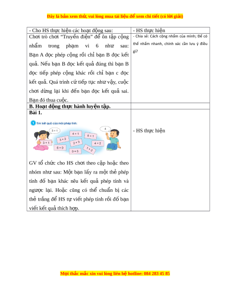 Đây là bản xem th , vu ử i lòng mua tài li u ệ đ xe ể m chi ti t (c ế ó l i ờ gi i ả ) - Cho HS th c hi ự n các ệ ho t ạ đ ng s ộ au: - HS th c ự hi n ệ Ch i ơ trò ch i ơ “Truy n ề đi n” ệ để ôn t p ậ c ng ộ