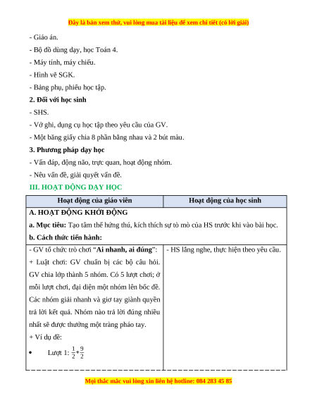 - Bộ đồ dùng dạy, học Toán 4. - Máy tính, máy chiếu. - Hình vẽ SGK.