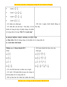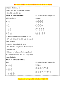 4 Lượt 2: −2 9 9 1 Lượt 3: + 3 + 7 10 10 10 20 Lượt 4: − 8 − 2 21 21 21 5 Lượt 5: + 7 −1 6 6 6 - GV nhận xét, đánh giá.