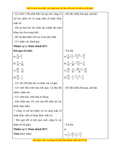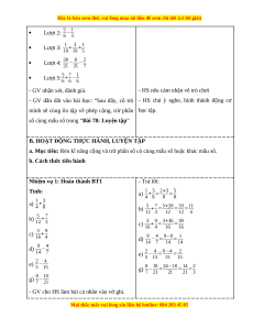5 Lượt 2: − 1 6 3 1 Lượt 3: + 3 +1 10 10 5 20 Lượt 4: − 8 − 2 21 21 7 5 Lượt 5: + 7 −1 6 6 6 - GV nhận xét, đánh giá.