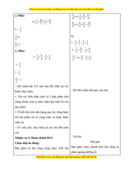 - Rèn kĩ năng cộng và trừ phân số có cùng mẫu số hoặc khác mẫu số.