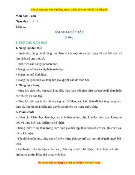 Ngày dạy: …/…/… Lớp: … BÀI 83: LUYỆN TẬP (2 tiết)