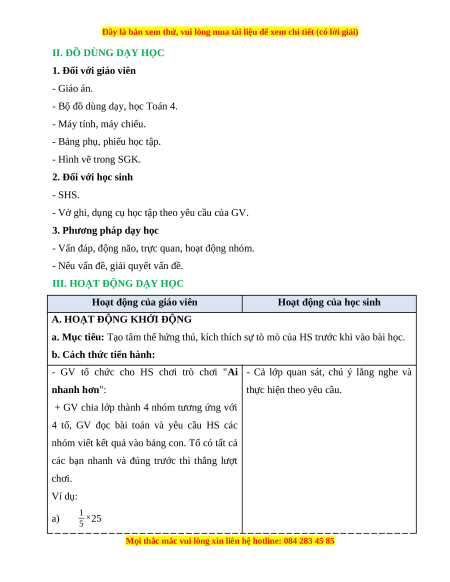 - Bộ đồ dùng dạy, học Toán 4. - Máy tính, máy chiếu.