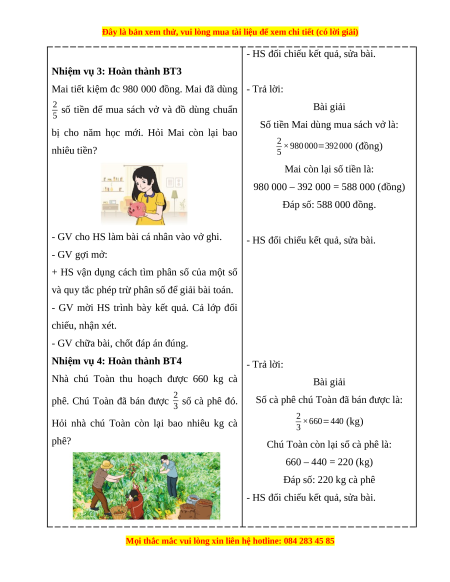 - Luyện tập, củng cố kĩ năng tìm phân số của một số và vận dụng để giải bài toán về