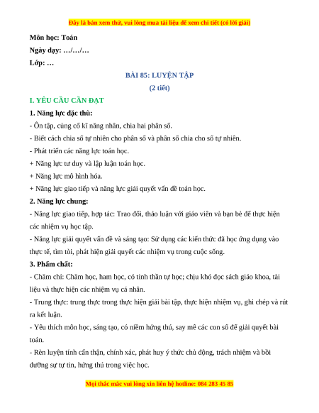 Ngày dạy: …/…/… Lớp: … BÀI 85: LUYỆN TẬP (2 tiết)
