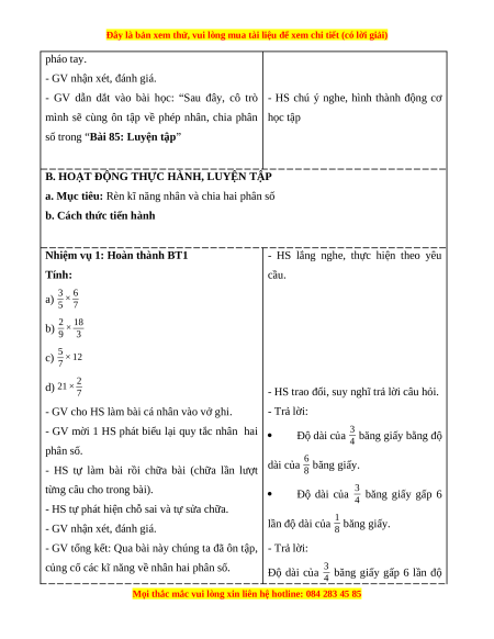 - Ôn tập, củng cố kĩ năng nhân, chia hai phân số.